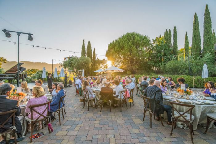 The first Friday night kicked off with a concert from Emmy and Tony Award-winning actress Kristin Chenoweth, which was held at the Tuscan-inspired Castello di Amorosa. The petite actress with a larger-than-life voice wowed the crowd with a medley of show tunes from her career and beyond. Following the recital, people continued on to either the festival-sponsored after party or the first Patron Dinner of the evening, which was held at Reserve Napa Valley and catered by Estate Events at Meadowood. Chenoweth herself made an appearance, greeting the patrons and thanking them for their support over the years.