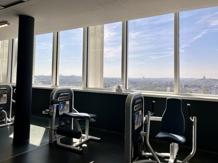 The 40th floor also houses an indoor heated swimming pool, the highest in Paris, while two floors below is a large gym and yoga and meditation space. Incentive to go running there is the terrific view over the Seine.