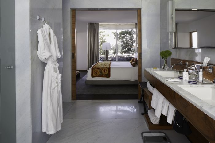 Guestrooms at Las Alcobas aren’t just stylish; they’re smart. Thoughtful touches include Nespresso machines and complimentary snacks and non-alcoholic beverages replenished daily. (Such a simple offering that always feels so indulgent). Marble bathrooms feature deep soaking tubs that beg for use. The hotel takes bathing seriously. A specialty “Bath Butler” service allows you to choose from three custom herbal soaks: Jet Lag, Sensual, or Relaxing. Each is prepared with ceremony by your Anfitrión, the personal host who attends to each guest.