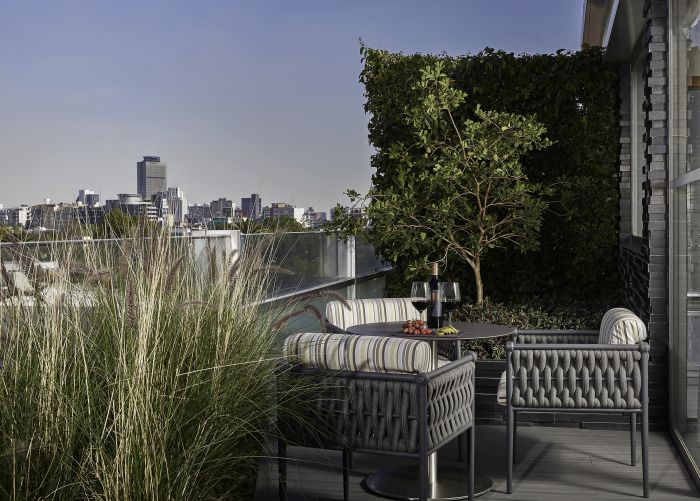 Automation controls make adjusting lighting, curtains, and climate effortless. At the top tier, the penthouse suites open onto rare private terraces, a luxury almost unheard of in Mexico City.