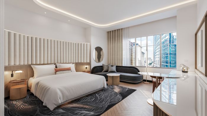 The reimagined JW Marriott Houston Downtown will unveil a major expansion that unites the historic Samuel F. Carter Building with the adjacent 1920s Battelstein’s Building. The project adds 56 rooms for a total of 384 guest rooms and 89 suites, creating the largest collection of luxury accommodations in Houston’s historic core. Guests can expect a new rooftop pool and restaurant, expanded event spaces, and refreshed interiors by Rottet Studio. Timed for the 2026 FIFA World Cup, this multimillion-dollar transformation blends heritage architecture with modern luxury in the heart of Downtown Houston.