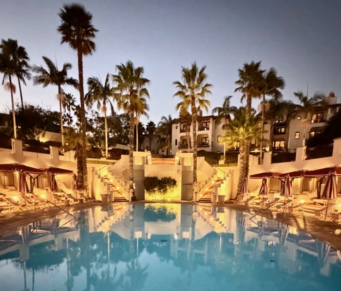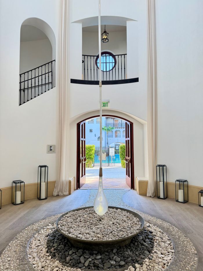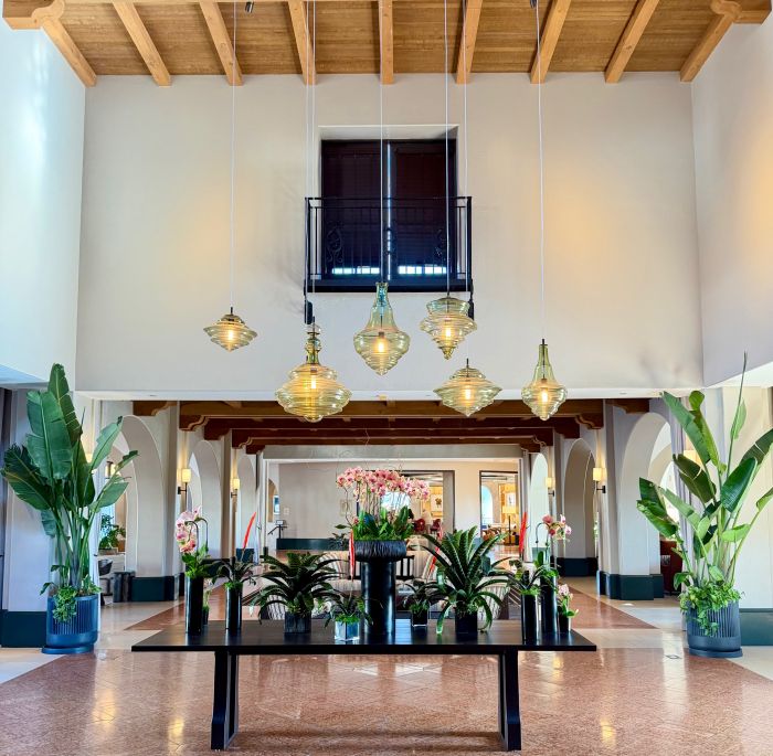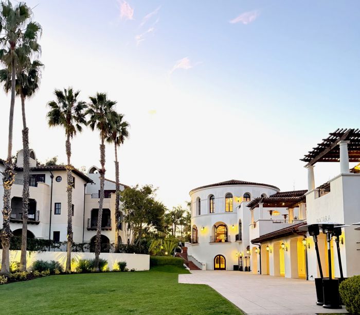 The coastal Mediterranean design includes ironwork, terracotta tiles, organic textures woven in designs to reference early California heritage and layered lush greenery. The beautiful design details were created by a team from the renowned firm Meyer Davis Studio.