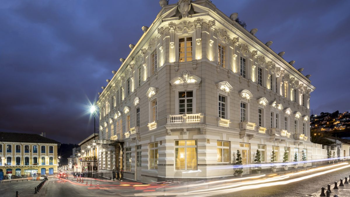 The sense of antiquity was palpable at Casa Gangotena. Before becoming a luxury hotel in 2011, the Gangotena family mansion was already known, and located on an advantageous, unique corner, across from Quito’s most recognized square is the 500-plus year-old Plaza de San Francisco, where the iconic Cathedral of St. Francis stands. The construction of the basilica and convent of the Cathedral San Francisco began around 1537, with the completion of a temporary church in 1550. Then, the new construction of the current cathedral was completed around 1680. The Cathedral and Plaza San Francisco are part of the UNESCO World Heritage Site. And Casa Gangotena is across the street.