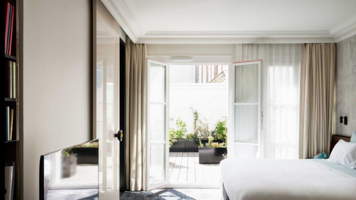 Les Bains offers 13 classic rooms and three executive rooms that feature a queen-size bed, five superior rooms and 10 deluxe rooms with a king-size bed, three junior suites with a king bed, a suite with a queen size bed and an impressive Les Bains suite that includes a living room, kitchen and an enormous terrace.