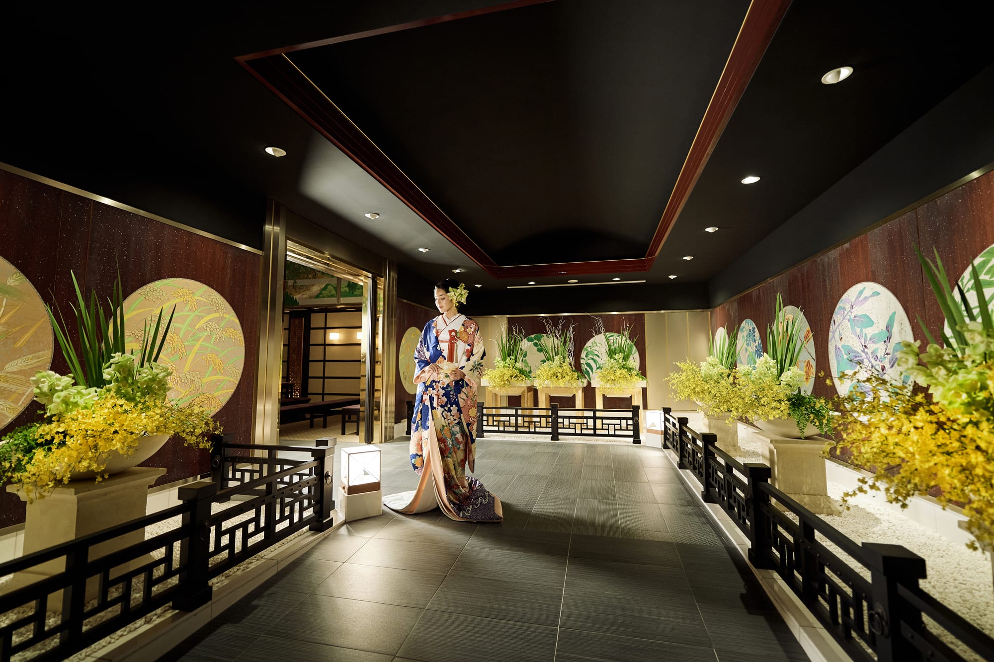 The hotel is really an immersion in Japanese history, art and culture that began over 90 years ago. In 1928, Meguro Gajoen began as a dining and entertainment complex before it began hosting weddings. The complex that houses the hotel is Japan’s most highly regarded mega wedding hall and hosts up to a whopping 30 weddings per day. At any time of day, young couples and their guests, adorned in pretty kimonos and formal suits, can be seen coming and going in a parade of pretty colors.