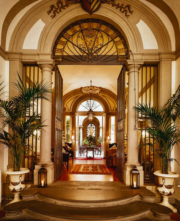 To experience Florence at its most luxurious, a stay at the Relais Santa Croce by Baglioni Hotels is a must. Perfectly situated in the historic center of Florence, this 18th-century palazzo bursts with old walls telling stories of its many past lives. The original structure of the building has been preserved yet doesn't neglect the modern comforts that today’s well-versed traveler requires. The hotel is based on a Leonardo da Vinci design that supports a 10-foot chandelier in the center of its elegant ballroom. If anything, the property feels more like a palace than a hotel, surrounded by fine art deco and furnishings that sit under sumptuous frescoed ceilings.