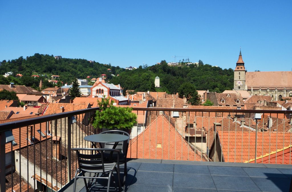 Hard to imagine a more relaxing scenario than sipping a glass of crisp local wine while gazing across the fir-clothed mountains of Transylvania as the sun casts its warmth over the open patio of Schuster Boarding House in Brasov.