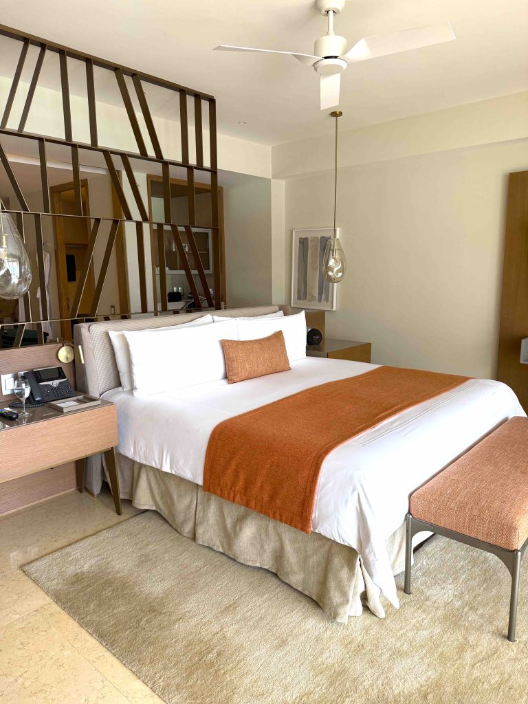 Each suite offers personal concierge service and 24-hour room service. Rooms are equipped with bug spray, beach bags, and a nice welcome Mezcal tequila bottle for cocktail hour.