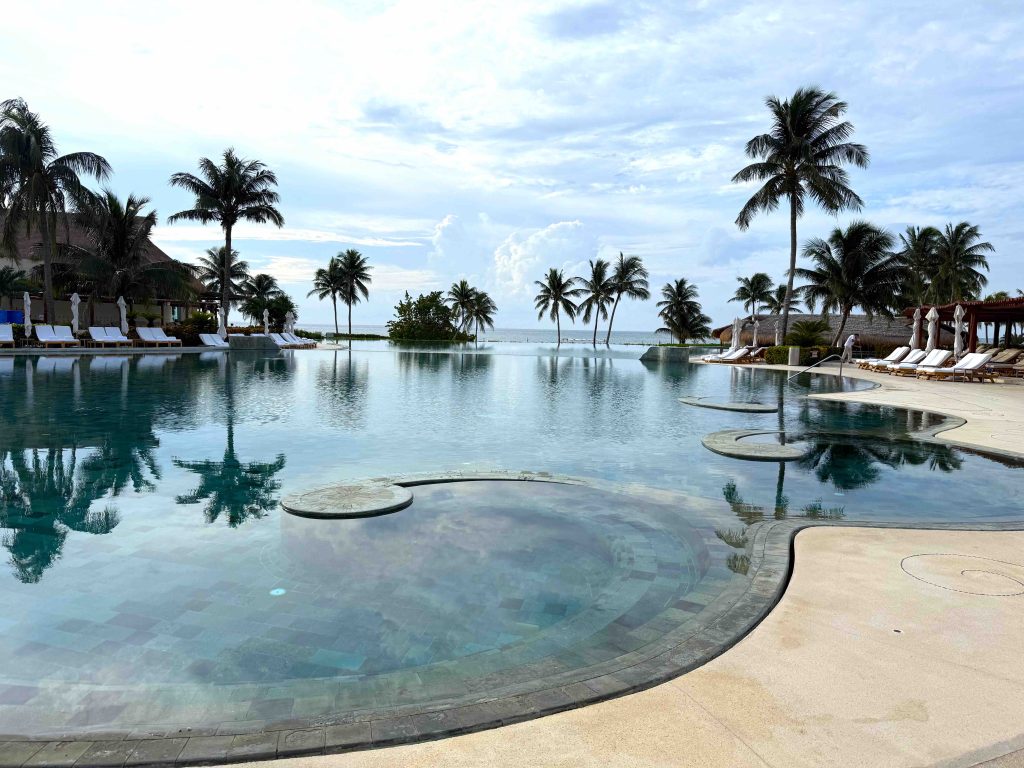 Poolside waiter service, swim-up bars and Balinese beds beneath swaying palms add to the sophisticated and laid-back atmosphere. From the tranquil Zen pool set amid jungle greenery to the expansive Ambassador pool with full ocean views, there’s a spot for every guest seeking pool time. The Zen pool offers different depths and is a smaller pool, so it is a good option for families with toddlers or small children.