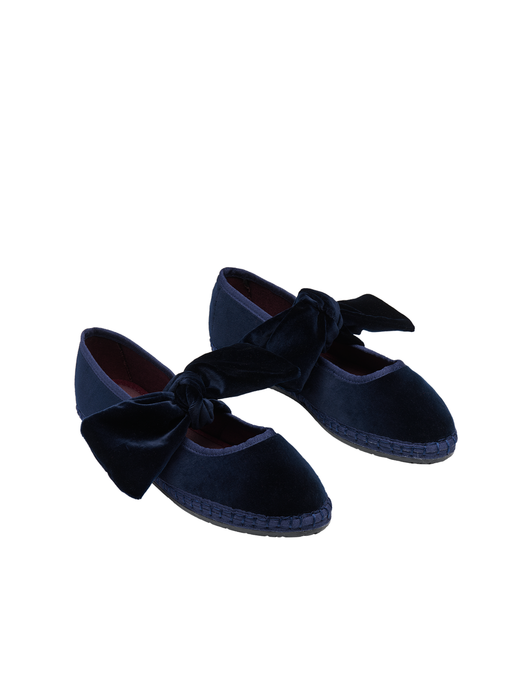 Soft cotton velvet with matching piping and bow detail; soles crafted from recycled bicycle tyres. Understated luxury with sustainability credentials — a conscious, stylish holiday gift.