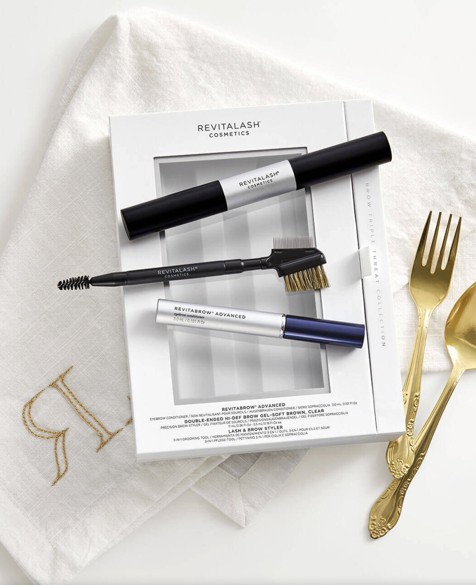 A thoughtful, beauty-forward gift for anyone who cherishes well-groomed brows. The RevitaBrow Triple Threat Collection combines their best-selling brow conditioner with a free double-ended Hi-Def brow gel (in Soft Brown & Clear) plus a handy 3-in-1 lash & brow styling tool — everything needed to nurture, define and style brows like a pro. It’s ideal for gifting to someone who loves a polished, put-together look or wants to elevate their everyday beauty routine.