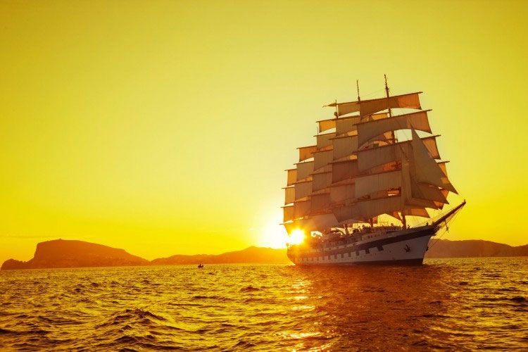 For those who need to take that first step away from a mega-cruise ship, but are a little leery of medium-sized sailboats, Star Clippers is a great first sailing cruise experience. Both the Star Clipper and Star Flyer (pictured) are 360-foot-long clipper ships that can accommodate 170 guests in barefoot-luxury fashion. Also, itineraries in the Western and Eastern Mediterranean don’t put you on the open ocean for too long. In the Western Mediterranean, you can stroll Corsica’s white sand beaches before pulling in next to superyachts at Monte Carlo and St. Tropez. In the Eastern Caribbean, you can admire Game of Thrones scenery in Malta and then drink in the historic beauty of Sicily and Greece.