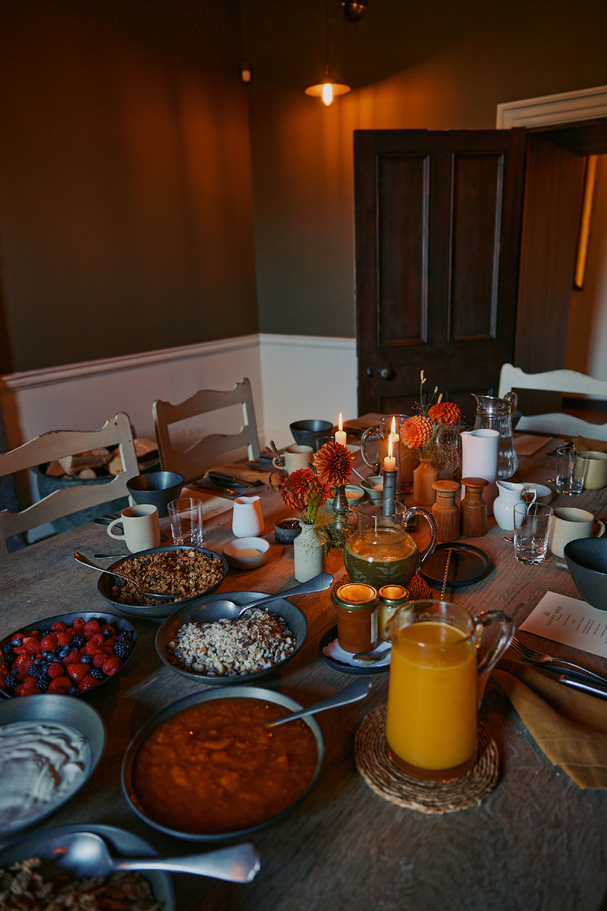 Breakfast at Aldourie Castle gives guests a variety of seasonal fruits, fresh juices, yogurts, traditional Scottish breakfast, and omlettes.