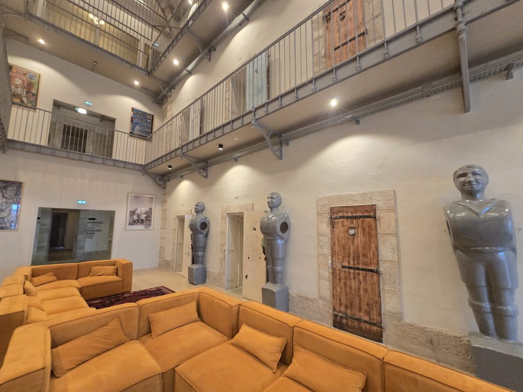 At its summit, we discovered the intriguingly reimagined Hôtel La Prison—a former penitentiary turned design-forward boutique hotel. Adjacent to the commanding Saint-Nazaire Cathedral, the setting felt almost poetic: a place once defined by confinement now offering sweeping panoramic views and artistic liberation.
