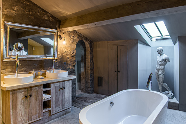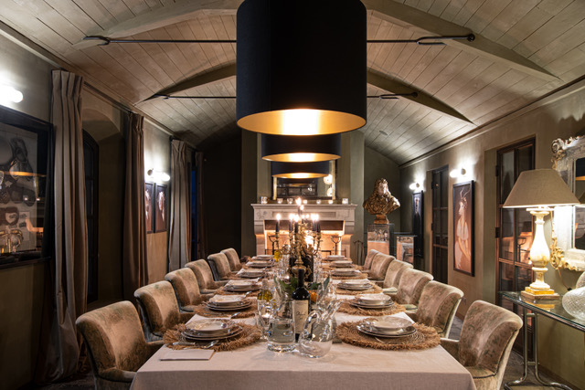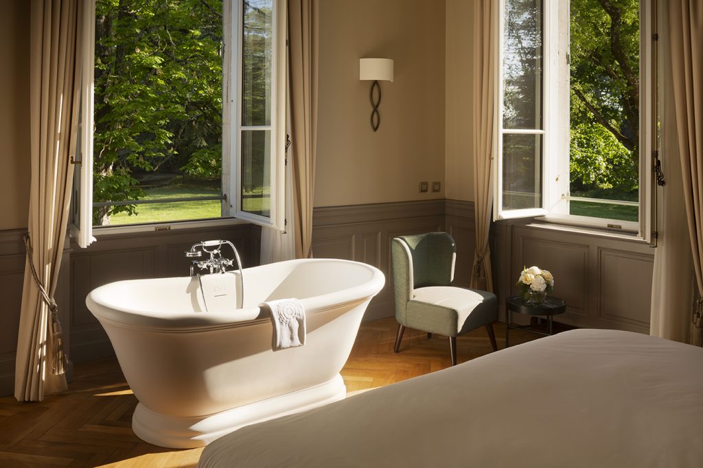 The estate itself is a sensory experience: lavender and honeysuckle scent the air, while manicured gardens, rose-lined paths, and ancient trees create a timeless Provençal tableau. Days unfold slowly here—perhaps with a soak in a clawfoot tub overlooking the grounds, or a leisurely stroll through the property’s expansive parkland.