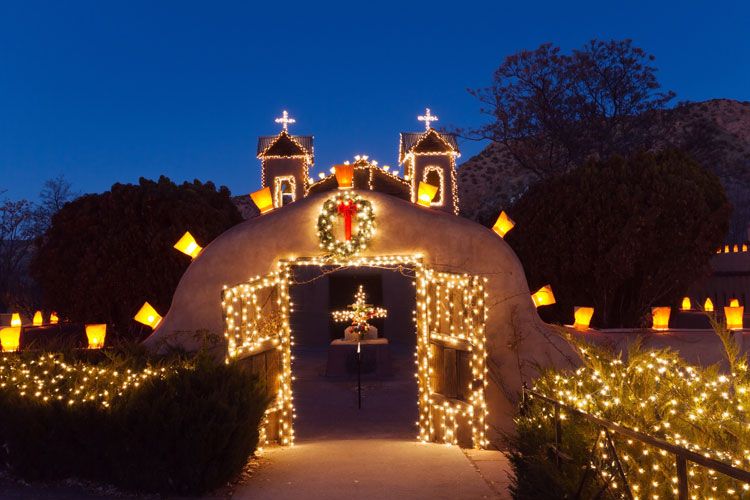As one of the most Catholic states and one of the poorest states in the US—but one with a world-class art capital and strong American Indian heritage—New Mexico is a memorable and unique place to be at Christmas time. Believers flock to the religious landmarks and saint galleries, skiers and hippies converge on Taos, and locals turn Santa Fe into a magical town of twinkling lights.