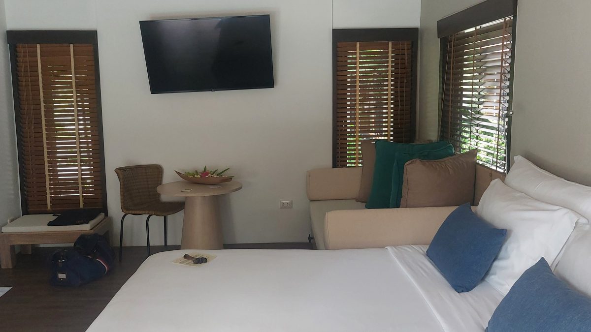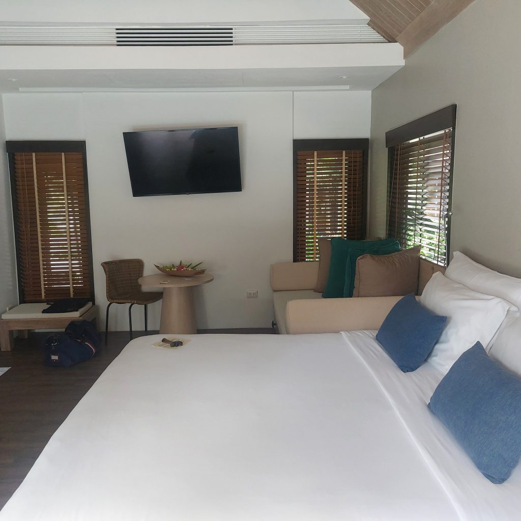 Hungry from all that activity? The seating restaurant is open from 7 a.m. to 10:30 p.m., and the buffet breakfast option features station cooks, e.g. for omelets. At The Pavillion, guests may order refreshing cocktails or savory snacks. Only the buffet is enclosed, and even it has some outdoor seating. The staff is attentive but not intrusive. Dinner choices include salmon or Australian lamb chops as Western fare, and Som Tam (papaya salad), crab curry, or pineapple fried rice as traditionals. There are many other Thai dishes ranging from prawns to pork to Pad Krapow. Top everything off with the homemade ice cream, or if you have room, the chocloate lava cake.