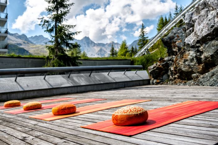 The Tschuggen Grand Hotel, located in the Alpine region of Arosa, is known for its uniquely designed Tschuggen Bergoase Spa and the various wellness experiences they offer, including yoga classes. Taking place both at the spa overlooking the spectacular Alps and outside in a secluded spot on the Tschuggen Mountain, guests are invited to begin their morning or unwind after spending the day on the hiking and biking trails by becoming one with nature and taking in their peaceful and stunning surroundings. Directly following their yoga class, travelers can indulge in a relaxing spa treatment or take a dip in one of the Tschuggen Bergoase's indoor or outdoor pools, bringing their experience to the next level.