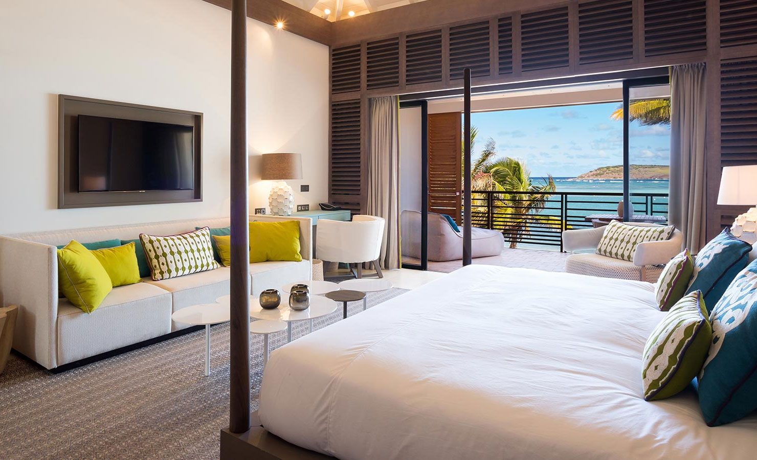 Guests are invited to explore two different dining experiences crafted by Michelin-starred chef Guy Martin. In the mornings at Le Barth, the fare is fresh, light and easy, such as homemade pizzas and stuffed baguettes. Come nighttime the venue transforms into Aux Amis, a more upscale dining affair with island-inspired French cuisine in a casual setting. Served all day, Le Café will be open for coffee while poolside drinks and light snacks can be enjoyed at Le Turquoise bar.