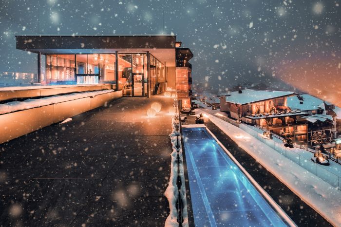 The resort’s architecture exudes understated elegance: earth-toned natural materials, stone, and hand-crafted woods are artfully woven into its tranquil interiors, while panoramic windows make the most of the majestic peaks surrounding the hotel. Each suite is appointed with walk-in rainfall showers, plush bathrobes, and private balconies that offer stunning views of natural surroundings, a welcome respite if you’ve spent the day on the slopes or wandering throughout the village. The overall environment radiates warmth and exquisite taste — a testament to the refined management by the Hettegger family whose commitment to an impeccable stay is felt in every detail.