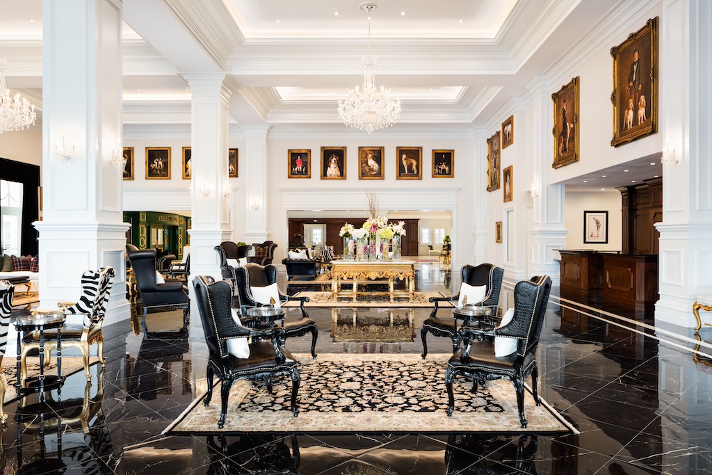 From the moment you enter the grand, hotel lobby, you will be mesmerized by the 20-foot floor-to-ceiling fireplace that is surrounded by crystal chandeliers, marble floors, and exquisite furnishings— there’s a sense that you’re stepping into a modern-day manor infused with equine soul. Without leaning into kitsch, the décor is a graceful dance between European sophistication and the world of show rings: think oil paintings of hounds, furniture with bridle-bit drawer pulls, lamps shaped like trophies, and upholstery that borrows from equestrian tradition.